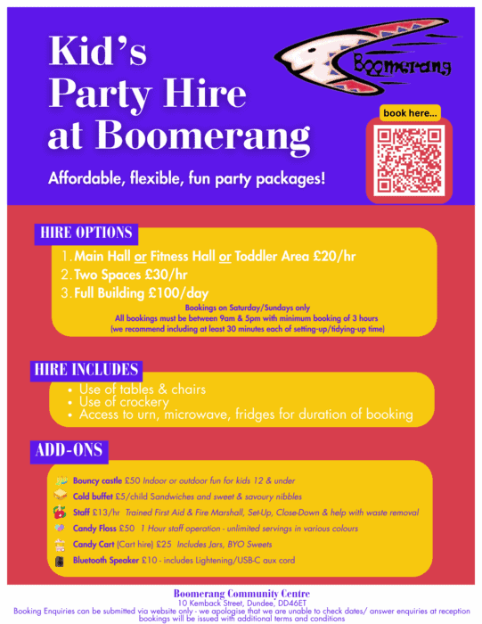 Book your local community centre for kids parties on Saturdays or Sundays between 9am & 5pm (minimum 3 hours).